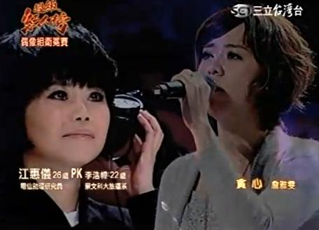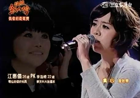 偶像組-- 江惠儀26歲(帶牙套,電信研究員,4歲時就在公園走唱):瞑那會這麼長/黃小琥 22分(勝)