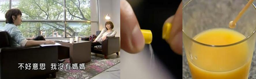 瑞凡很貼心,把藥加入果汁(柳澄汁)中,以免藥苦…請薇恩喝下(當然薇恩是很不想喝啦~)