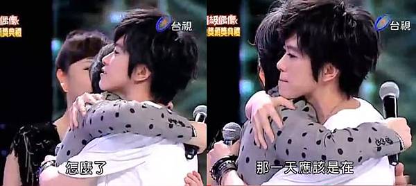 阿京在上台和黃國倫相擁而掉淚,應該不是因為得這個獎而落淚,應該是她覺得當初在超偶的她是很快樂的,但現在在演藝圈的她,不是這麼快樂,,,,可能是在擁抱之下而突然有的激動,才落淚的!