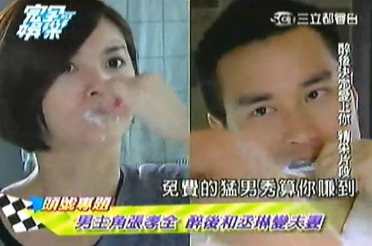 兩人各地去刷牙……宋:「剛剛讓妳看到免費的猛男秀,算你賺到!但是我虧大了~」