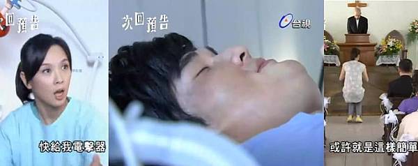--------------沈若薇在醫院,若薇:「快給我電擊器,快點!!」她竟然是在電擊…言鐵男!!!失敗嗎??沈若薇驚醒,走出門,看到阿追,叫住她,阿追說:「大家都去教堂參加追思會啦!」