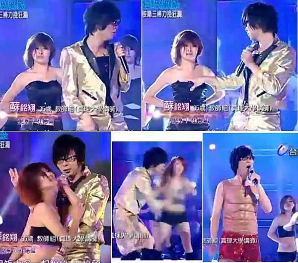 第2組 http://youtu.be/WmtB3Y-MJH0 (蘇哥哥連舞裙的小可愛也都脫掉了,害得人家胸罩打馬賽克)